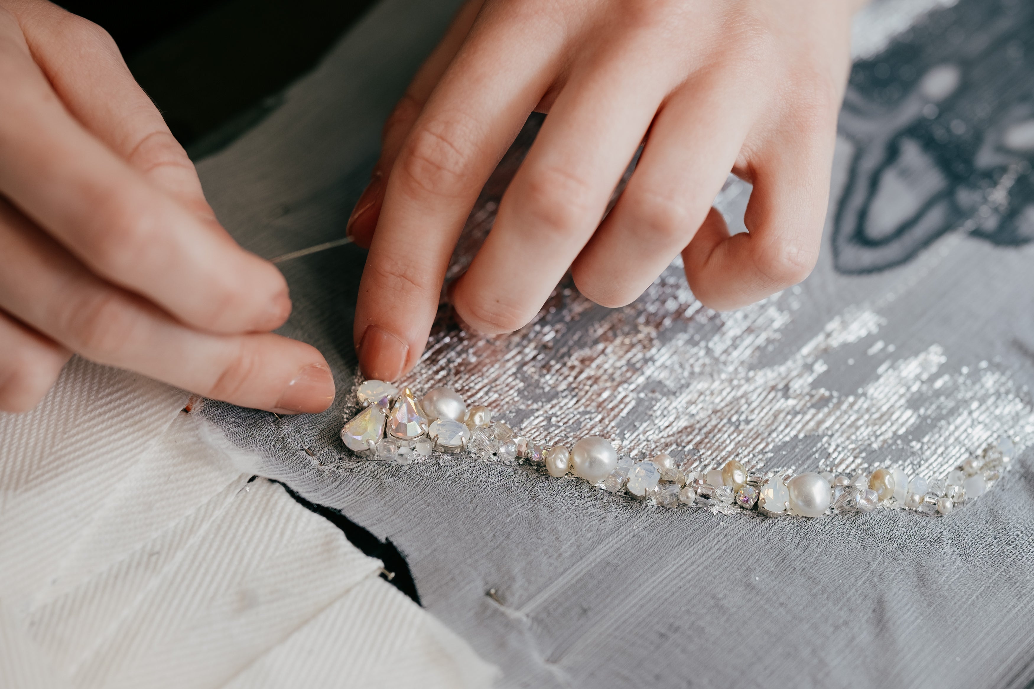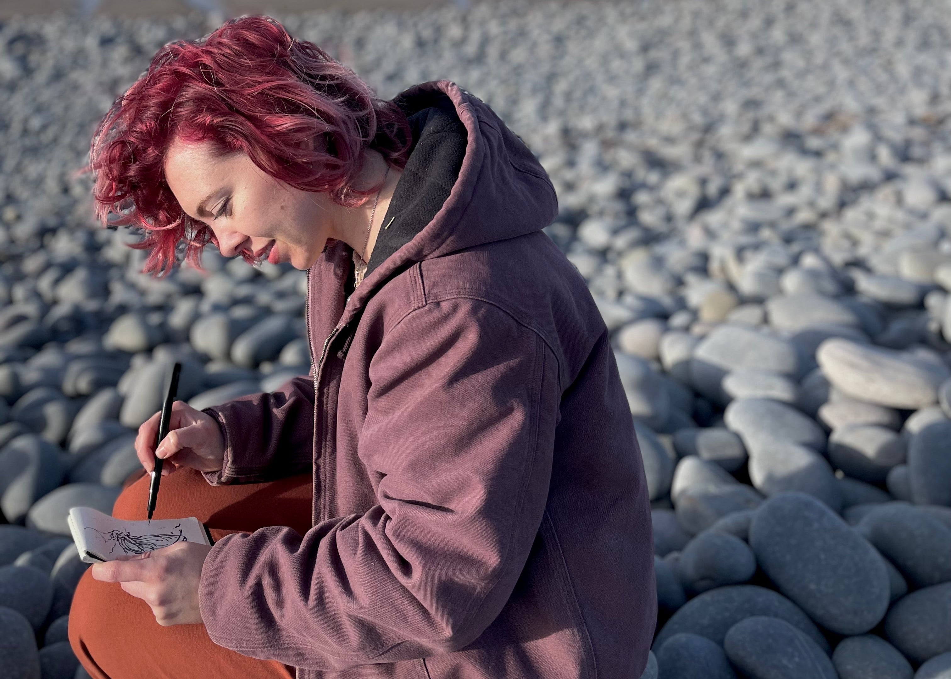 Rosie created her brand in 2024 after training and working in couture and costume embroidery in London and Paris for several years. Now based in a quiet seaside village, Rosie creates handstitched jewellery and artworks that echo the ancient beauty of the earth and sea. Influenced by her surroundings, Rosie sketches natural and imagined forms that are then translated into textile processes. Each piece is one-of-a-kind, lovingly crafted from found fabrics, delicate beads, fine wire, crochet, knit, found objects and embroidered surfaces. Slow-made by hand, these works are intended to be held, worn, and lived with. Rosie sells online, at UK craft markets, and is stocked in several galleries. She also teaches and exhibits as part of her practice.